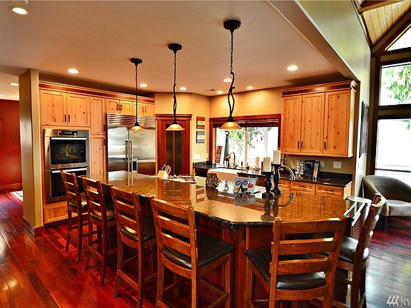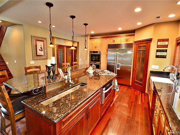 Incredible Western Exposure Waterfront Home on Lake Tapps. This home boast with quality throughout. Starting w/Gourmet Kitchen S/S appliances, Formal Dinning rm, to a Beautiful Master Suite and a main floor den. Entertain in the lower level w/rec. rm w/wet bar, theater room and work rm. 65' concrete bulkhead, dock, lakeside cabana, w/covered boat slip, and room for toys in detach garage. To many items to list.