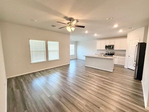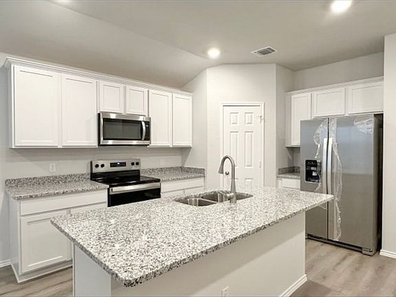 At the heart of the home, the open-concept kitchen features a corner pantry, a breakfast bar perfect for quick meals or entertaining, granite countertops, and sleek stainless-steel appliances. The kitchen flows effortlessly into the bright and spacious family room, creating a perfect space for gathering and connection.