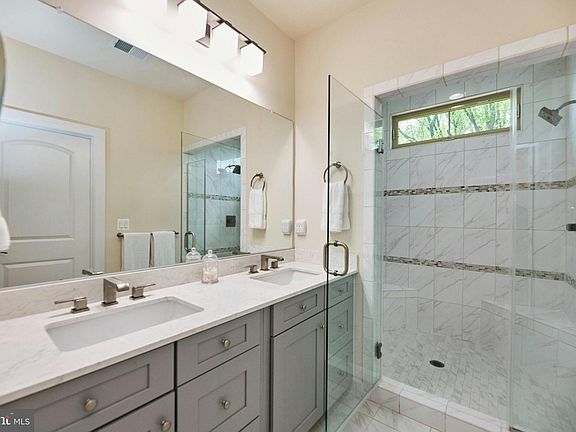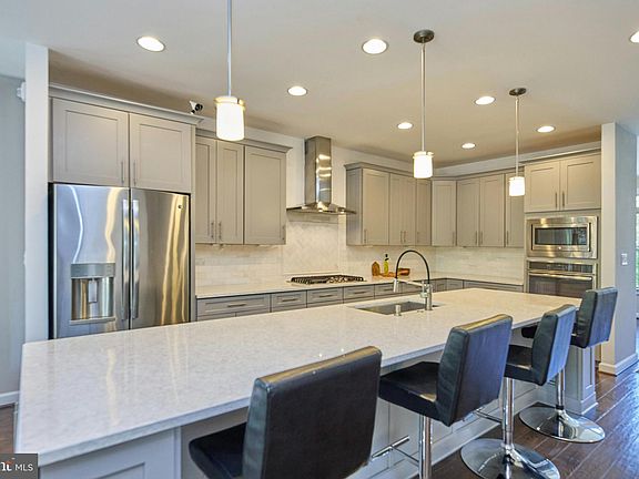 Canceled Open House. Beautiful end unit town home on The Premier Lot in the community. Backing to common space, this sun drenched, luxury home with 3200 finished sq ft is in move in ready condition, built in 2016 makes you feel like you are immersed in the space you were meant to be. With 9' ceilings on main and upper level, the gourmet kitchen pumps the heart and feeds the stomach of the home. Boasting high end cabinetry and a large kitchen island with white toned quartz countertops & ample bar seating, there’s also a walk in pantry for all your additional needs. Deluxe GE Stainless Steel Appliance package with oversized refrigerator, a tall tub energy star dishwasher, 36” gas cook top with externally vented SS range hood, built in microwave & wall oven. There is also a convenient main level powder room off the kitchen. On one side of the home is a lovely dining room that can be enjoyed intimately or holds the space for a large dining table for holiday feasts or entertaining. On the other side of the kitchen, the spacious family room flows from the kitchen and has a beautiful modern gas fireplace as a focal point. The nearly floor to ceiling windows and double set of French doors allow for amazing natural light into and through out the home. It’s a great place to gather with friends & family, or to retreat to with the peaceful views of the community. Off the rear, is the expansive rear deck that looks out over the common space that will not be developed and remains a beautiful place to enjoy the views and the changes of the season. The upper level has an expansive primary bedroom, with sitting room space, dual walk in closets, a high end bathroom with dual sinks, privy room, and lovely glass enclosed shower. The secondary bedrooms are also gracious in their size and share a large hall bath with double sinks. The bedroom level laundry room has ample shelving and is located perfectly for making cleaning easy. In addition to the oversized 2 car garage on the entry level, there is also a large rec room that can also serve as a bedroom, if desired. The bright lower level has French doors to allow access the paver patio and small grassy area inside the model grade privacy fence with gated access to either the front or rear of the property. There is also a full bath on the lower level, multiple closets added by the seller as well as storage space. Other additional features of the home include an E/V charger outlet in the garage, a gas powered tankless water heater, upgraded recessed and/or LED lighting though out the home with dimmers in common space locations, 200 AMP 2 Phase Breaker Box, and built out storage spaces in both the garage and hidden areas through out the home for maximum use. The community itself is located in an extremely convenient location a stones throw from the new, high end West Falls development set to be finished later in 2024 with an array of shops, restaurants, hotel, groceries and more, not to mention existing amenities in other nearby locations. The West Falls Church metro stop is 0.7mi, door to door from the home as well as easy access to all major commuting arteries. Come tour the property with your agent beginning 5/2 or view the home through an open house on Thursday 5/2 12-2pm or Sunday 5/5 from 1-4pm. You won’t want to leave.