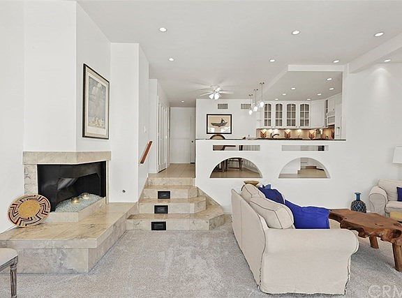 Welcome home! This turnkey one bedroom, one bathroom condo is a corner unit in Key 11. This second floor condo is light and bright with a great view of the pool as well as the bay! This updated home features new carpet and paint throughout, ceramic tile flooring, a gas fireplace, inside laundry, air conditioning, a hidden home office closet and TWO subterranean parking spaces. Marina Pacifica is a 24hr guard gated community with six pools and spas, fitness center, 18 acres of beautiful landscaping, and a marina. This unit is a must see!
