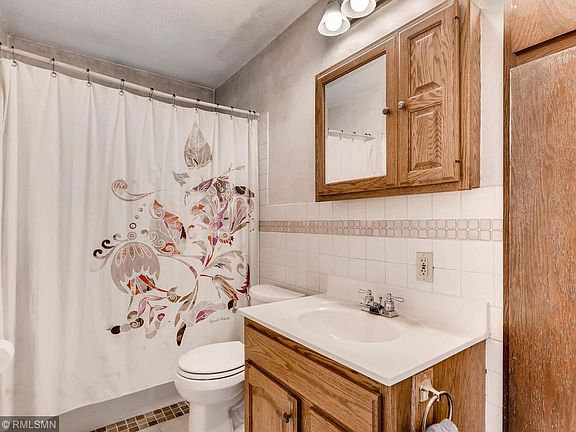 Must see this 4-bedroom, 2 bath, 2 car garage rambler in Blaine. Kitchen offers raised oak cabinets, stainless steel refrigerator, stove and microwave, eat-in kitchen area. Living room has a large bayed window with Hardwood floors, 3 bdrms on main level and full ceramic bath. Huge family room in lower level, 4 bdrm in lower, full bath in lower level, ceramic flooring (heated). Wooded private backyard, concrete patio, fire pit. New roof and furnace in 2017, stove 2015, water heater 2016.