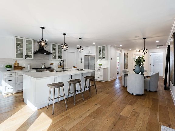 Set along a peaceful, tree-lined street in North Fair Oaks, this charming home blends timeless curb appeal with bright, breezy interiors. Wide plank floors, crown molding, and abundant natural light enhance the open layout, anchored by a chef's kitchen with quartz countertops and premium appliances from JennAir and Fisher & Paykel. The living room centers around a fireplace, while three spacious bedrooms include a well-appointed primary suite. Outdoors, a vine-draped pergola, sunny deck, lawn, and planter boxes create a serene setting for entertaining or everyday enjoyment. Solar panels add modern efficiency, and the prime location offers easy access to downtown, beautiful parks, commute routes, and acclaimed Menlo-Atherton High School (buyer to verify eligibility).