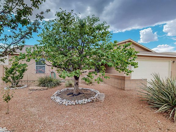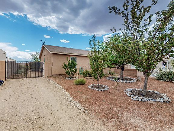 Custom-built Wallen home sitting on a beautiful half-acre lot in Rio Rancho. This charming property offers 3 bed, 2 bath home offers functional floor plan that maximizes space. The living area features a fireplace, suitable for relaxing or entertaining. Newer H20 heater , fresh paint, yards are landscaped, providing a pleasant outdoor space & cinder block fencing ensures privacy & security. Take advantage of the half acre lot with backyard access, covered patio, irrigation system, attached 2-car garage w/ backyard access door, additional storage/shelving and extra refrigerator in garage will convey! Owned water softener and a reverse osmosis (RO) water filter system. Wonderful location, nestled in a premier school district, no HOA or PID! Original owner. Sheds convey! Lovely Views !