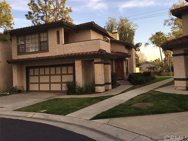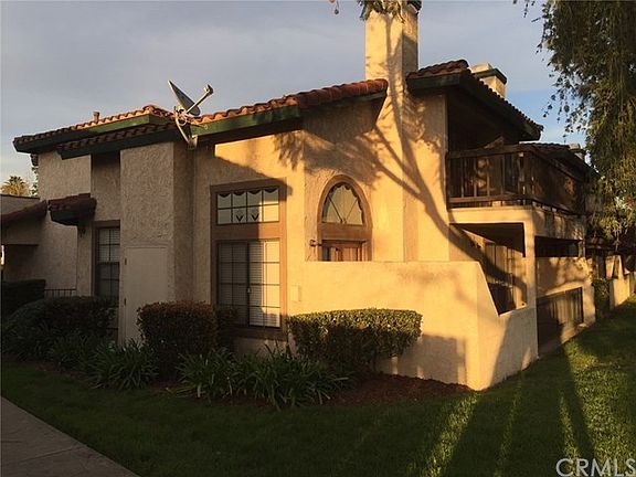 Serene location - end large unit situated on green belt on Cul-De-Sac in well kept complex. Large living room/great room with fireplace, wet bar, and French door opening to large patio that overlooks the green belt downstairs...separate dining area also with French doors to patio... kitchen with freestanding gas range, refrigerator, microwave and double sink. Tile countertops and breakfast bar. Upstairs TWO Large Master Suites, both with French doors opening to balconies and each has its own walk in closet. Large Loft for den/office. The indoor Laundry room with adjoining half bath is set conveniently in the hallway between the kitchen and the oversized Two car attached garage. The Planned Unit Complex (PUD) has a nice swimming pool with a Spa and has a meeting room. Central Air conditioning and heating. Conveniently located within one mile to the Grocery shopping, restaurants and has easy access to the 210, 10 and 57 Freeway.