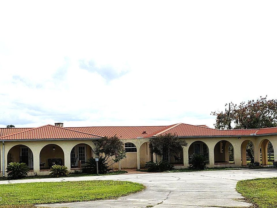 Photos coming soon! Spanish Farmhouse Retreat on 5 Acres! Set in Seville's quiet agricultural community, this custom Spanish-style farmhouse offers privacy, charm, and versatility. A tree-lined drive leads to a circular entry and oversized 3-car garage with breezeway. Inside, enjoy an open floor plan with granite countertops, hardwood floors, crown molding, recessed lighting, and a cozy fireplace. French doors and double-pane windows bring in abundant natural light. The property includes a detached Mother-In-Law Quarters, tack horse barn, 3 grazing paddocks, RV pad with hookup, gazebo/summer kitchen, and carport/shed. Expansive patios provide space for entertaining or relaxing in peaceful surroundings. Lovingly maintained, this home combines timeless finishes with country living, just 40 minutes from Flagler Beach, Ormond Beach, and Deland.