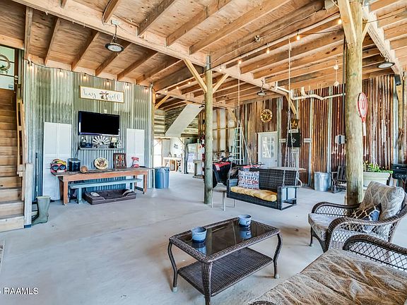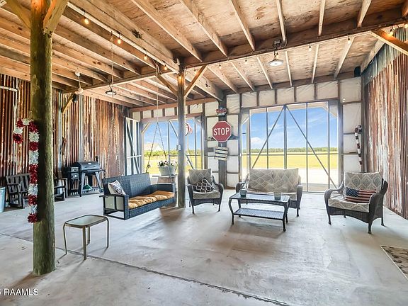 Located in the peaceful community of Indian Bayou, this unique barndominium sits on 10.48 well-maintained acres in Lafayette Parish, offering a versatile blend of comfort, function, and rural charm.Originally built as a barn, the structure has been thoughtfully converted into a warm and inviting living space using repurposed materials, giving it both character and eco-conscious appeal.The interior features a 2-bedroom, 1-bath layout with a full kitchen and spacious living area, all climate-controlled with central air and heat. An additional outdoor bathroom adds convenience for time spent outdoors or while hosting.Beneath the living space, a large covered outdoor area is ideal for gathering and entertaining. It includes a gas range/oven, a full-size sink, a television, and plenty of room to relax and enjoy the outdoors.The acreage includes 15 mature pecan trees, a tranquil pond that attracts wildlife, and ample space for livestock or recreational use. With plenty of land available, there's also the opportunity to build a primary residence while using the barndominium as a separate guest space, rental, or retreat.This property offers flexible living options and room to grow. Schedule your private showing to explore all it has to offer.