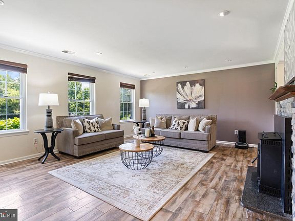 Charming 4BR/2BA Farmhouse on Expansive Lot Available October 1st This beautifully maintained 4-bedroom, 2-bath farmhouse is gracefully situated on a spacious, landscaped lot in the sought-after Clarks Run community. Filled with natural light and enhanced by a warm, neutral palette, this residence offers an open-concept floor plan with refined finishes and thoughtful updates throughout. The main living area features a pellet stove set within a striking stone hearth, creating a cozy yet sophisticated ambiance. The kitchen exudes French country charm with granite countertops, black stainless steel appliances, a deep copper farmhouse sink, custom cabinetry including a built-in wine rack and generous pantry space. The vaulted family room provides additional living space and convenient access to both the front and rear yards. The main level includes two well-appointed bedrooms, including a spacious primary suite with a walk-in closet and custom built-ins, as well as a full bath with integrated laundry. The second floor offers two additional bedrooms with vaulted ceilings and charming window benches, a full bath with dual vanities, and access to attic storage. Outdoors, enjoy a private, fully fenced yard with a large concrete patio surrounded by mature landscaping. An attached two-car garage, accessible via a breezeway, completes the property.