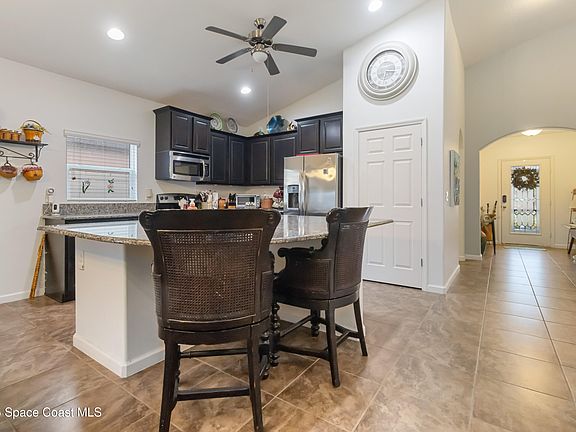 Welcome to your slice of paradise in Palm Bay. From the moment you step inside, you'll notice how the vaulted ceilings and open design make the home feel bright, spacious, and inviting. The tile floors flow seamlessly throughout, while the kitchen, complete with granite countertops stainless steel appliances, and a beverage cooler, is perfect for everything from weeknight dinners to weekend entertaining.