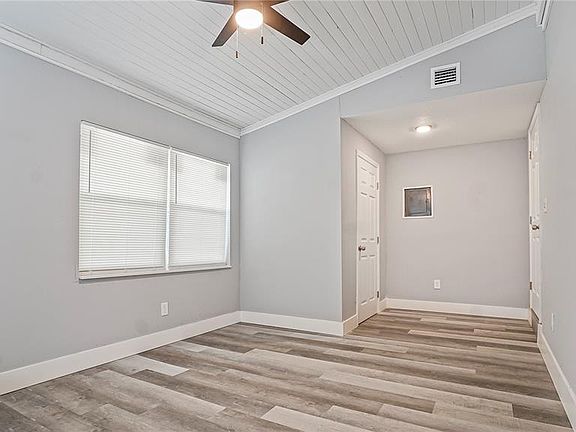Welcome to this fully renovated single-family home sitting on a spacious 1/3-acre lot with mature trees and plenty of parking for a growing family. Every detail has been updated for comfort and peace of mind, including brand-new windows and doors, new drywall throughout, fresh paint inside and out, and a completely updated electrical system with a new panel. The home features durable LVT flooring throughout, new tile in wet areas, LED lighting, and ceiling fans in every room. The kitchen is the heart of the home, offering new cabinets, granite countertops, and all new appliances, perfect for family meals and gatherings. Both bathrooms have been beautifully remodeled with exotic tile and modern fixtures, while the cozy living room decorative fireplace creates a welcoming space to relax. Additional updates include a brand-new water heater and a new air conditioner with a 1-year labor and 10-year manufacturer warranty. With a flexible floor plan that can easily be converted into a 4-bedroom, 2-bath layout, this move-in ready home offers both style and room to grow.
