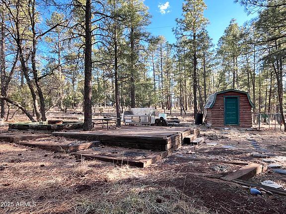 The home is beautifully set on a hillside, with a great view and a seasonal creek on a 1.56 acre forested property in town! Private driveway, handicap-accessible shower, den, laundry-room/large pantry; large playroom/entertainment room, kitchen/ living area has a pellet stove. Master bedroom with double walk-in closets. Carport with large enclosed workspace and detached shed. Separate 500 sq. ft. detached cabin with a wood stove, perfect for a game room or bunk room or a she-shed, or he-shed?. Basketball court, outdoor fire-pit, and BBQ for entertaining, outdoor shed for tools. Property is being sold as-is.