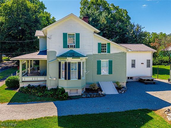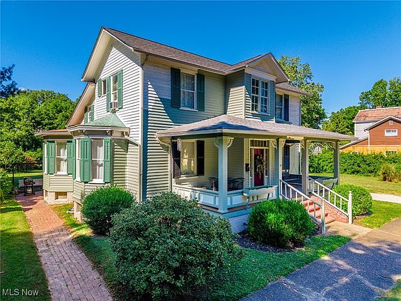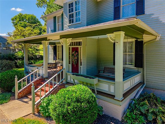 Step back in time with this 1860 charmer in historic Marietta, Ohio! Sitting gracefully on a spacious triple lot, this timeless home showcases bay window offsets that highlight its classic architecture. The wide front porch, complete with a swing, invites you to linger and enjoy the character of a bygone era, while the intricate trim details and tall windows remind you why homes of this period are so treasured. The current owners purchased this home with a vision in mind, but a rare opportunity has presented itself—allowing someone new to step in and carry that vision forward. This is your chance to add the finishing touches and truly make this historic beauty shine once again. Inside, the home echoes history the moment you step through the door, greeted by the original staircase and tall ceilings that tell stories of another era. The main level offers a spacious eat-in kitchen with brand new stainless steel appliances, a new full bath combined with laundry, and freshly painted walls throughout. The layout features a large parlor along with a family room or dining room option, first first-floor bedroom, giving you flexibility to create the living spaces you need. Upstairs, you’ll find two spacious bedrooms along with a full bath that still showcases its original clawfoot tub—a true nod to the home’s vintage charm. Outside, the updates continue with a two-car garage featuring a brand new door, an additional sheds, and plenty of yard space for gardens or gatherings on this triple lot in downtown Marietta. The exterior is currently in the process of being repainted and will be completed by the sellers, while a new roof was just installed in the summer of 2025, providing peace of mind for years to come. This home offers the perfect blend of historic character and modern updates—ready for you to put your stamp on and make it your own.