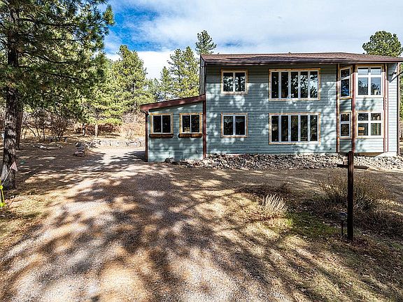 Welcome to your home in the woods! Close to Bear Dance public golf course for golfing and dining and just a few miles from Larkspur elementary. Fiber high speed internet available and easy access to I25 and Castle Rock via frontage road. All the big projects have been tackled in this lovely Larkspur home. New exterior stain, new upgraded Kolbe windows (currently being installed), new roof and new wood flooring on the upper level! Enclosed and insulated front porch with newer hot tub to soak your cares away. Inside, you'll find stunning custom wood work throughout, oak flooring and a sun room with floor to ceiling windows featuring energy efficient passive solar! Convenient main floor office/den. Large eat-in kitchen with newer stainless appliances and granite, open to the oversized dining area. Dining area could also double as a secondary living room. HUGE mud room/laundry area with ample storage for extra pantry items. Upstairs, you'll find 3 bedrooms including the master bedroom with seating area and newly updated master bath. This master bath features a custom cedar lined closet and laundry facilities with gorgeous modern cabinetry! Finished portion of the basement features Beetle Kill Pine flooring and beautiful wood beamed ceilings installed less than 2 years ago. Endless possibilities in the large unfinished portion of the basement. It has a fresh coat of paint and is ready for your storage items, create a workshop or finish to your liking. Backs to vacant, undeveloped land. Lot's of privacy! Come see this home today!