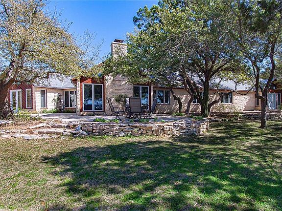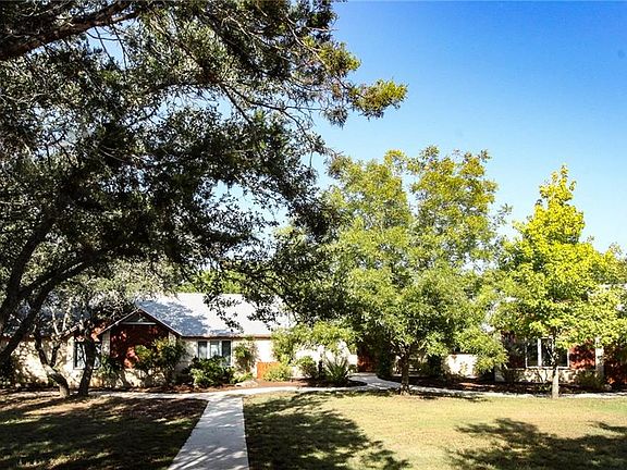 A private entrance takes you to this sprawling custom ranch style home sitting on 10(+/-) treed acres with breathtaking views & sunsets. This well maintained home has many upgrades/updates (see list). You will enter through a Brazilian Mahogany front door and see that it has an open concept floorpan with soaring cathedral cedar ceilings in the Great Room and Family Room. There is a multitude of casement windows throughout the home, & a beautiful floor to ceiling custom Texas limestone fireplace. French & sliding doors take you out to the spacious back patios, a great spot to relax or for entertaining friends and family. The spacious kitchen with 'Texas Pearl' granite counter tops, pull out shelving for your pots and pans, corner cabinet with Lazy Susan shelf system, ample workspace & storage, reverse osmosis, stainless steel Whirlpool built-in appliances huge island bar, & more. Huge Primary Bedroom with vaulted cedar ceilings and large walk-in closet, and sitting area. The Primary Bath has a double vanity, large walk in shower, and heated/jetted spa tub. Each of the bedrooms have distant views and customized ceiling designs. There is a large walk-in shower in the Guest Bath. Landscape is mostly native, drought tolerant, and deer resistant plants with butterfly gardens, and fruit & nut trees: Plum, fig, keifer pear, granny smith apple, peach, apricot, and pecan trees. Property perimeter is fenced with equine fencing... Bring your horses! For the gardener, there is a fenced garden area with raised beds (organic garden practices in fruit & vegetable garden beds), cedar greenhouse, & a shade house. Plenty of room to add a pool, guest house, tennis courts, barn, etc. Showings by appointment only. FEMA flood zone - unknown