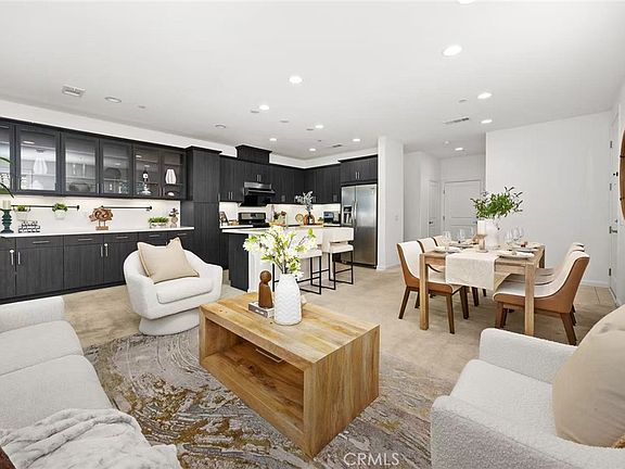 Contemporary elegance meets effortless comfort in this beautifully designed end-unit two-story townhouse. Ideally situated within the desirable gated Parkside Community of Ontario – and best of all, No Mello-Roos! This light-filled residence offers 3 bedrooms plus a loft and 2.5 bathrooms. A bright open-concept layout that seamlessly connects the living, dining, and kitchen areas. Chef-inspired kitchen featuring a quartz-topped center island with sink, abundant cabinetry for storage, and stainless steel appliances, blending beauty and functionality. A glass door provides access to a large private patio, perfect for relaxation and outdoor entertaining. A convenient powder room on the first floor for guests. A versatile loft upstairs — ideal as a family room, home office, media room, or optional 4th bedroom. Primary suite featuring a walk-in closet and a spa-inspired bath with soaking tub, separate glass-enclosed shower, and dual quartz vanities. Two additional bedrooms served by a beautifully finished full bathroom with dual sinks. Upstairs laundry room for ultimate convenience. Attached two-car garage with direct access. Enhanced throughout by recessed lighting, dual-paned windows, and plantation shutters. Central AC and heating, a tankless water heater, and two EV chargers. HOA dues: $346/month — includes spectacular resort-style amenities: clubhouse, Sparkling pool with relaxing fire pit, tot lot, and picnic areas perfect for family enjoyment. Ideally located next to Cucamonga-Guasti Regional Park. Minutes to Ontario Mills Mall, Metrolink Station, and Ontario International Airport. Quick access to Freeways 10, 15, and 60.