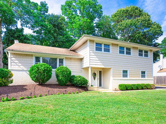 Tucked away high above the Manasquan River in a neighborhood with bluff views this renovated North Brick area home has it all. Large fenced private property w sidewalks, over sized driveway and a two car garage. Interior includes brand new KITCHEN & BATHS tastefully designed w new stainless steel appliances and custom cabinets. Well done redone family room & FINISHED basement w new vinyl flooring throughout. Highly functional layout w living and dining room to kitchen. Hdwd floors, Sliders out to back yard. 4 large bedrooms. Master has its own RENOVATED bath. Also NEW full bath plus powder room. Sep laundry area. Central air, newer water heater, vinyl siding. Take to next level private backyard offering a blank slate. Minutes to beaches, Brick reservoir, lighting Jacks marina, GSP & 195!