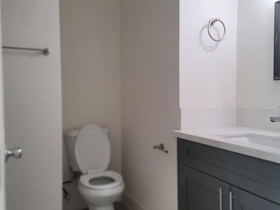 Brand new floor, kitchen, cabinet, stove, and bathroom.