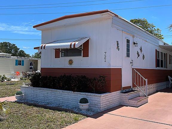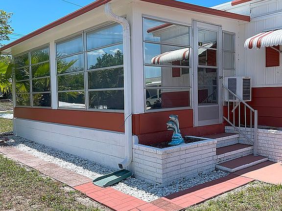 Priced to sell. Move-in ready. Fully furnished mobile home on a spacious lot. Well built, with hardwood veneer paneling and hardwood cupboards. Vinyl flooring throughout. Two bedrooms, one bath with an air conditioned Florida room. Shed with utility sink, washer and dryer. Roofover. Lease your land with low HOA fees. Very desirable, secure 55+ mobile home park with plenty of amenities and numerous activities. Two clubhouses, two pools, two hot tubs, sauna and tiki hut. Tennis courts, bocce courts, horseshoes, mini golf and cornhole league. Pickleball within biking distance. Hurricane took out some of the carport. Air conditioner installed 2011.