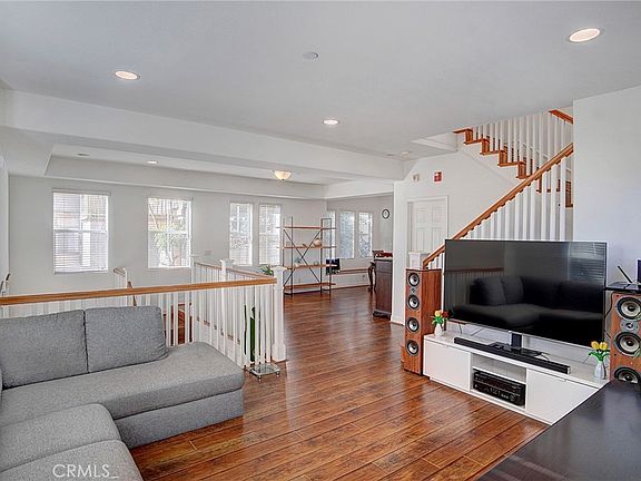 Foyer with high ceilings. A bright open floor plan. Spacious living room, dining area, and sitting area with recessed lighting. Double-paned windows, laminated floor, and Fench Doors. The gourmet kitchen with granite countertop, gas stove top, oven, vent, and ample cabinetry. The large, luxurious master bedroom offers French doors that open to a private balcony. The master bathroom features a jacuzzi bathtub, a separate shower, granite countertops, double sinks, and a generous walk-in closet. The second and third bedrooms share a full bathroom off the hallway. The unit includes an attached two side-by-side car garage with direct access to the unit. Inside Laundry hookups. A spacious walk-in storage with windows by the garage. There is also an additional guest parking and many more. A must-see!