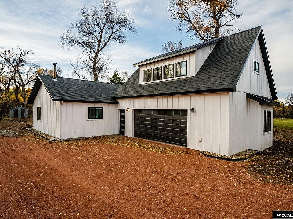Adorable, renovated 3 bed 2.5 bath Modern Farmhouse style cottage with River Frontage 10 min from the Bighorn Mountains!!  On nearly an acre with Little Tongue River flowing through the back yard, this adorable cottage comes with some incredible upgrades!  Privately tucked away down a meandering drive, this home that is nestled in the trees has received a major facelift! Along with all new siding, windows, exterior doors and roofing, this home just got a brand new attached 2 car garage with private sequestered primary suite, loaded with character! Metal-roofed shed dormers protruding from the 12/12 pitched roof give the home the modern farmhouse charm everyone loves. Ask your agent for details regarding an additional .41 bonus acres added at closing!