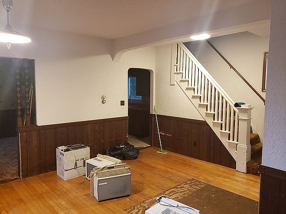 For sale 3 bedrooms 2 baths fixer upper. Two different heating sources. Natural gas radiators and forced air electric. House has central air. Large Master bedroom with walk in closet is down stairs. And 2 bedrooms upstairs. Has a laundry room on the main level. Shingles were new in 2010. New windows and doors in 2017. Electric water heater was replaced in 2020. Has a 2 car detached garage insulated with electric heater. Yard is partially fenced.
