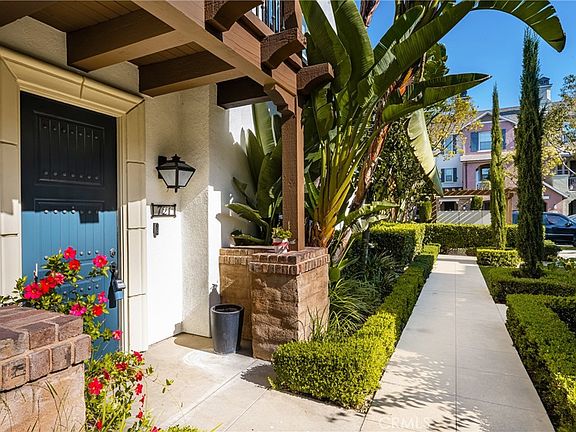 Welcome to Colony Park Resort Community in The Historic Colony Park District where you can enjoy a community that has so many wonderful amenities. This lower-level end unit with an open floor plan offers 2 spacious bedrooms and 2 baths. Beautifully upgraded with rich wood flooring, custom color paint, crown molding, and tasteful décor. The Gourmet kitchen offers white cabinetry, granite countertops with full back splash and stainless-steel appliances. The spacious primary bedroom with private patio and bathroom with dual vanities, separate shower and large soaking tub and huge walk-in closet offer a luxury style feeling. The guest bedroom has direct access to a private bathroom. Convenient inside laundry area and direct access to the oversized two car garage. Other great amenities included ceil fans, crown molding, custom shutters and tankless water heater. The community offers 3 resort style pools, with a covered pavilion, BBQ and firepit areas, exercise room, playground, dog park and additional green belt areas. All this is located close to fabulous restaurants, shopping, trending boutiques, art museums, nightlife and Historic Downtown Anaheim and Famous Anaheim Packing House.
