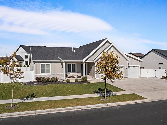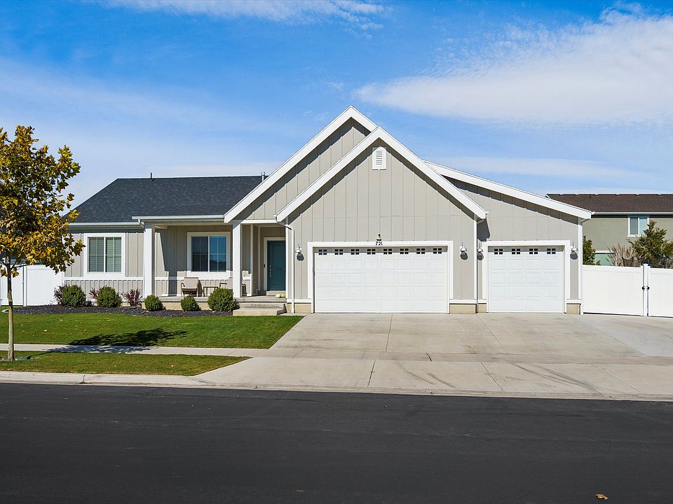 Fall in love with this beautiful rambler in one of Saratoga Springs' most desirable neighborhoods. Meticulously cared for, this home feels bright, open, and welcoming the moment you walk in. The main floor features high ceilings, a spacious living area, and a modern kitchen with granite countertops, perfect for gathering. The primary suite offers a soaking tub, separate shower, walk-in closet, and convenient same-level laundry. Two additional bedrooms and another full bath complete the main level. Downstairs, enjoy a large family room, another bedroom, a beautifully updated bathroom, a bonus exercise room, and tons of storage including cold storage. The fully fenced backyard is made for entertaining with an oversized patio, lush lawn, and plenty of space to play. With a three-car garage, RV parking, and a friendly community close to parks, schools, and shopping, this home truly has it all. Move-in ready and full of warmth and charm!