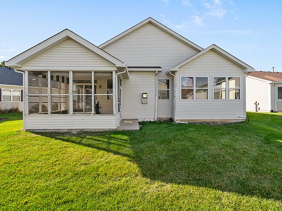 Welcome to this spacious sun-filled ranch home, perfectly nestled in the desirable Grand Haven 55+ community. This inviting residence features a bright and open living room and dining room with beautiful plank flooring, a well-appointed kitchen with oak cabinetry, pantry, and white appliances, and a wonderful three-season room that overlooks the yard-ideal for relaxing or entertaining. A set of double doors opens to a versatile sunroom or den, providing the perfect space for hobbies, reading, or quiet gatherings. The home is filled with natural light, including in the primary suite, which boasts both a walk-in closet and an additional closet, as well as a private bath with a double vanity and oversized shower. The partially finished basement expands your living options with a recreation room and utility sink. Offering comfort, convenience, and plenty of charm, this home is designed for both everyday living and special moments in a vibrant, active community. Grand Haven's top-tier clubhouse amenities, including pools, tennis courts (which also host pickleball games), a fitness center, ballroom, salon, arts and crafts room, and a plethora of engaging activities. Conveniently located just minutes away from shopping outlets and expressways!