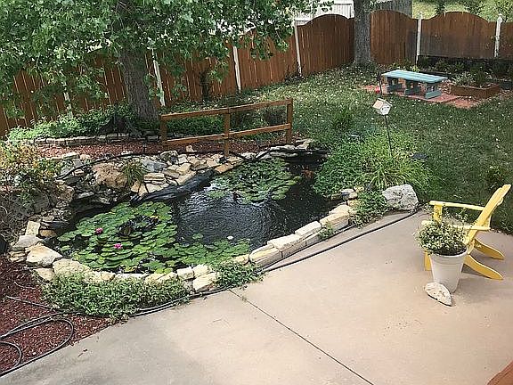 New roof , exterior paint and complete interior paint in 2018, upgraded stone counter tops, hardwood floors, upgraded landscaping, koi pond, privacy fencing of entire back yard, well maintained and move in ready. Attached master bath with walk in shower and dual vanities.Two guest bathrooms with full shower/tub combo. Full attached 2 car garage with overhead storage. Full laundry room. In quiet neighborhood with amenities for children and two fishing lakes. Walking distance to school, and YMCA. Close to shopping, city parks and restaurants. Tucked away from busy streets and a great walking neighborhood.