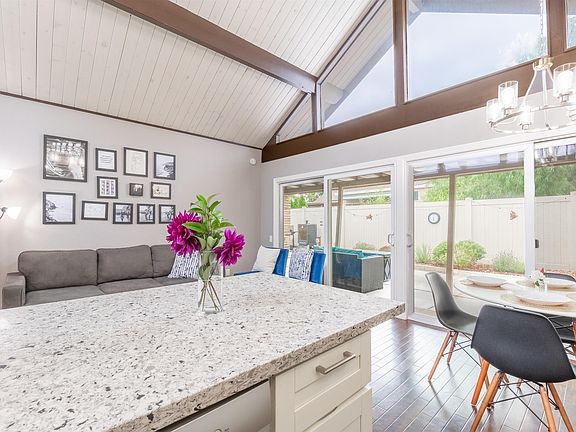 Attractive One Story End Unit Townhouse in Prime Location...Fabulous Open Floor Plan with Kitchen/Family Room/Dining Area Combo with Vaulted Ceiling with Exposed Beams plus Plenty of Windows to Shower the Room with Light...Updated Kitchen with Shaker Style Cabinets, Quartz Counters, Tile Backsplash, Breakfast Bar, Beautiful Pendant Lighting, Gas Stove, Microwave Oven & Dishwasher...Both Bedrooms with Ceiling Fans plus Main Bedroom with Slider to Covered Patio...1 1/2 Baths Updated...Dual Pane Windows...Forced Air Heating & Air Conditioning...Backyard with Covered Patio, Planter Boxes plus Side Yard...1 Car Garage with Easy Access to Freeways and Highway 84 to Fremont, Premium Outlets, Excellent Wineries & Shopping.