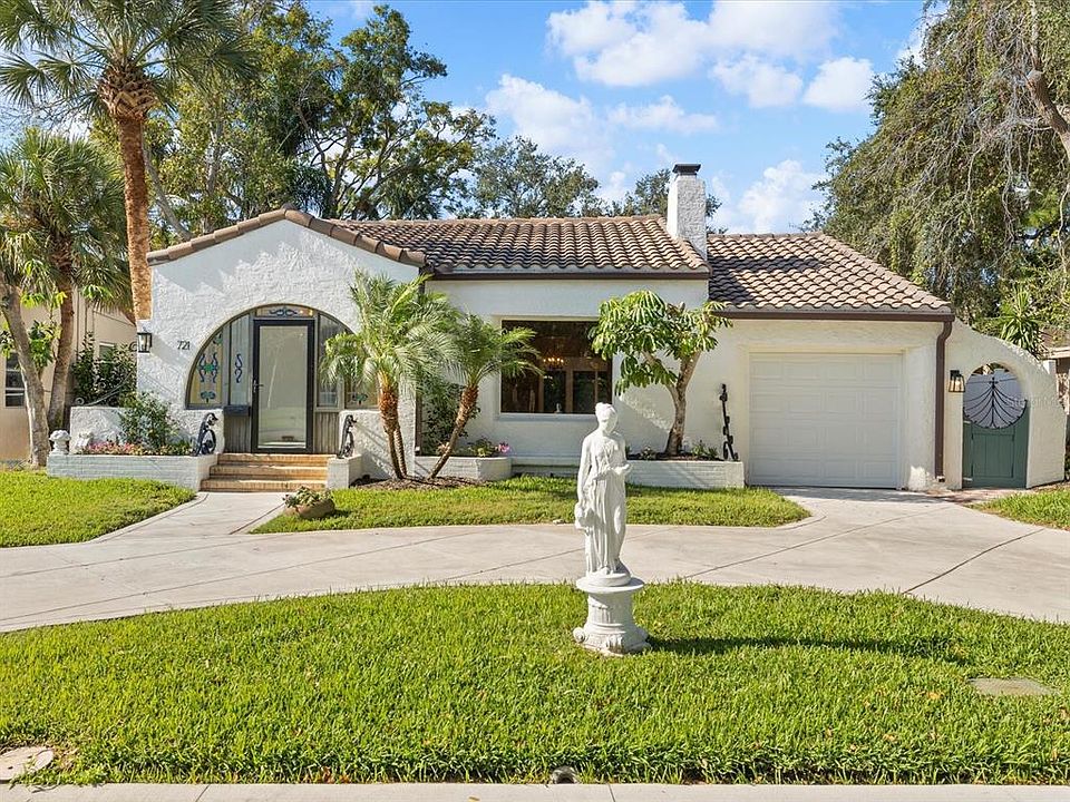 Perry Snell’s “Jewel Box” is on the market and ready to welcome its next history-loving homeowner. Originally built in 1934 by Perry Snell, the visionary founder and developer of St. Petersburg, this architectural masterpiece represents one of the most treasured pieces of the city’s history. Meticulously and lovingly restored by the Caporella Group of Florida, this residence seamlessly blends historic preservation with modern luxury. Every detail of the full renovation has been executed with precision and care—unmatched by anything else in the neighborhood. The original Swarovski crystal chandeliers, crafted in Italy in the 1920s, have been professionally restored and rewired to meet 2025 electrical standards. The inlaid cherry hardwood floors were carefully preserved and refinished, while the hand-painted vaulted ceiling reflects the grandeur of the nearby Vinoy Hotel. Adding to its historic significance, the property proudly showcases the original Snell Isle statue in the front yard—a rare and iconic feature that ties directly to Perry Snell’s enduring legacy. While its timeless character has been meticulously protected, the home features thoughtful modern upgrades including brand-new Café smart appliances, new electrical, plumbing, and HVAC systems, a new kitchen with soft-close wood cabinetry, granite countertops, and New England Brass fixtures. Additional enhancements include two remodeled bathrooms with Moen fixtures and TOTO commodes, a new tankless water heater, and an updated irrigation system. The backyard oasis will take your breath away with its turf and travertine checkerboard patio, stone-sculpture water features, and lush mature landscaping for complete privacy—creating an outdoor retreat that lives like the most important “room” of the home. Located in the prestigious Snell Isle community, across from the Vinoy Golf Course and just a short stroll or bike ride to Coffee Pot Bayou, Tampa Bay, and downtown St. Petersburg’s waterfront parks, shops, and restaurants, this home offers a lifestyle as remarkable as its history. This is not just a home—it’s a legacy property, a rare opportunity to own an enduring piece of St. Petersburg’s architectural and cultural heritage.