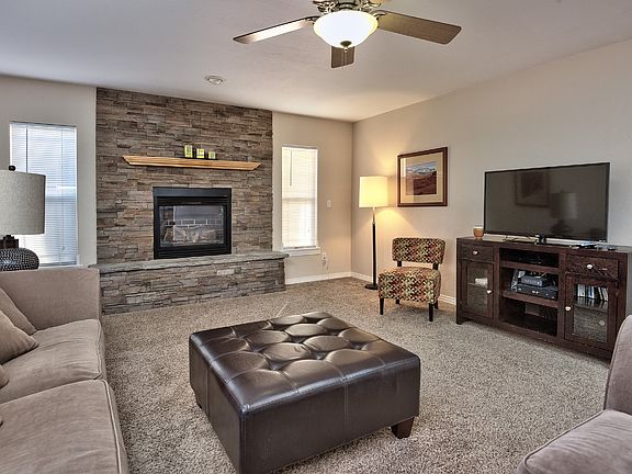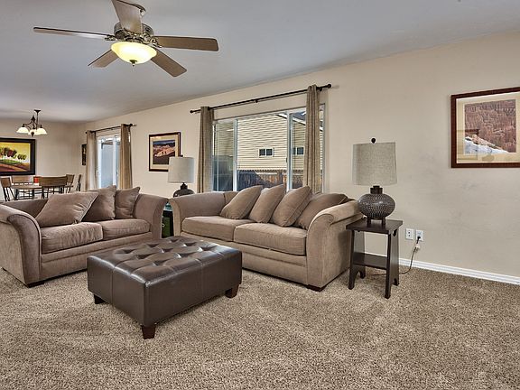 Great floor plan with large rooms and spacious feel throughout. Kitchen with breakfast nook and adjoining dining room. Large living room with gas fireplace - very open main floor. Three bedrooms and two bathrooms upstairs and 1/2 bath on main floor. Front east facing patio for morning coffee or afternoon/evening entertaining. Back patio to enjoy the private back yard. Wonderful north location. Walk across the street to Canyon View Park and close proximity to shopping and schools.
