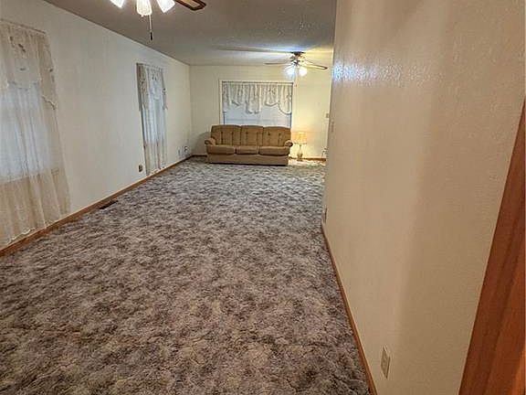 Recent updates include a new roof (2024), replaced after hail damage, and the home comes fully equipped with all appliances. A full-width cement storm shelter with built-in shelving provides peace of mind and additional storage.