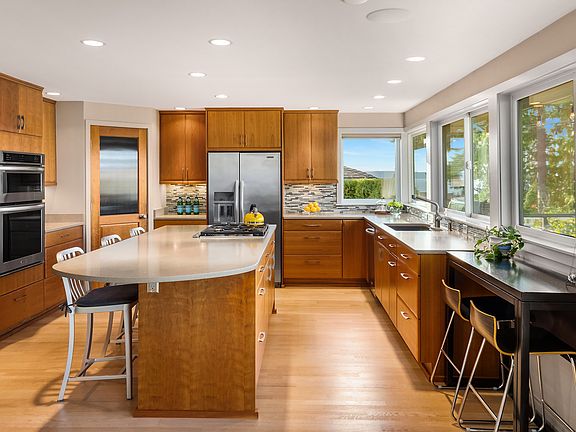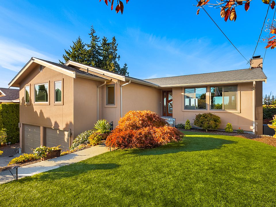 Sweeping sound and mountain views from this idyllic Edmonds Bowl home. A custom masterpiece completely reconstructed in 2013 welcomes to a gallery of windows to watch ferry boats by day and stunning sunsets by night. This open floor plan includes designer touches throughout, a gourmet chef's kitchen, the spacious master suite on the main plus two quiet lower bedrooms - all perfectly appointed with an elevator for the ultimate convenience. Enjoy seamless indoor outdoor living with glass bi-fold doors opening to the main entertaining deck and spacious rooftop deck for panoramic views. Gorgeous landscape designed for low maintenance, turn-key living. Highly sought-after location just blocks to downtown shops, restaurants, the ferry and beach.
