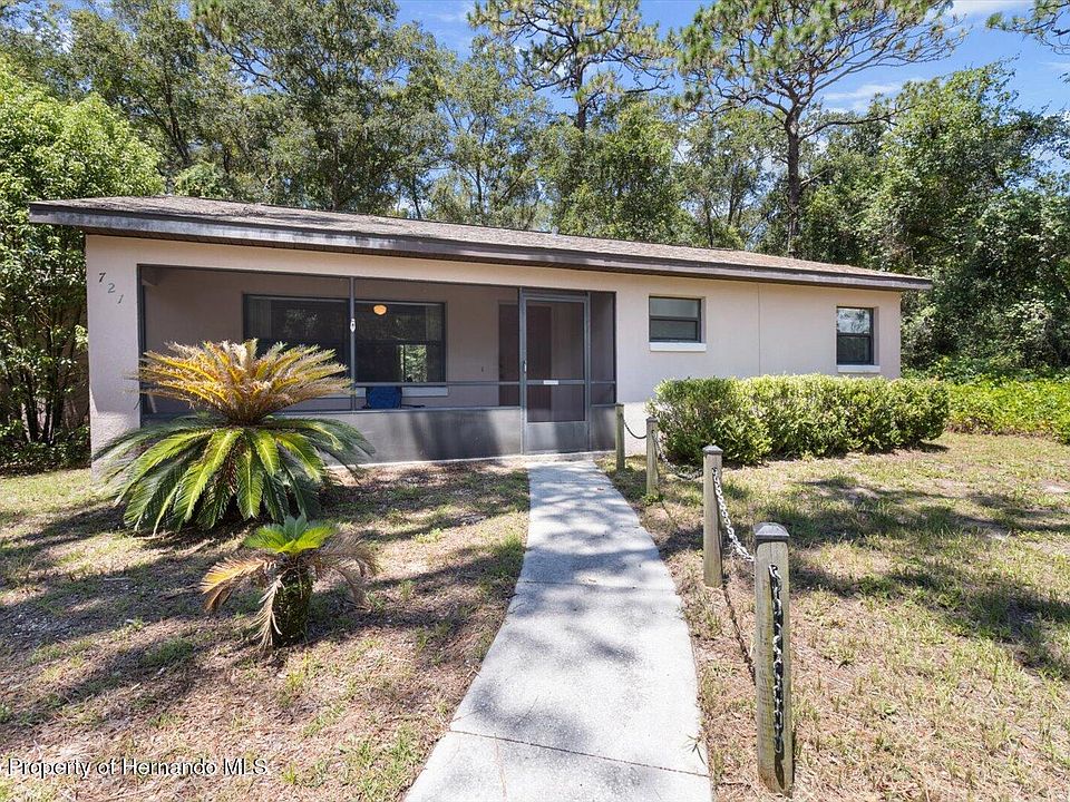 Watch the deer from backyard on your lanai. This 2-bedroom home is waiting your personal touches. With newer roof in 2022 and AC in 2021. Inside laundry and storage room off of the kitchen with a washer, fully equipped kitchen, front porch is screened. This home is a great starter home, or for those that want to down size the 2 bedrooms are good sized. This home is in city limits with the feel of living in a rural area. Inverness has so much for the nature lover with Withlacoochee State Trail, Hiking Trials, the Old Courthouse Heritage Museuem, Antique malls. Chain of Lakes for the boater or fishermen in the family.Come enjoy the Florida lifestyle.