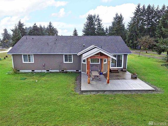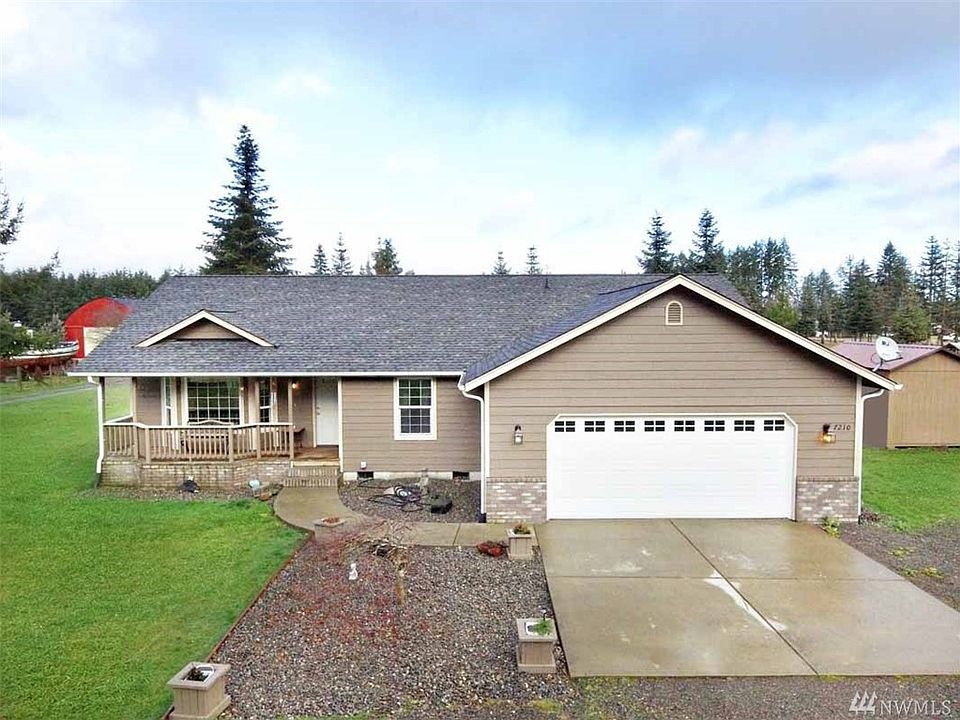This Beautiful 3 bedroom, 2 bath Rambler features a spacious kitchen with tons of cabinet space for storage and a walk-in pantry. Spacious open floor plan features vaulted ceilings with large open livingroom. This home also features master suite with master bath and walk-in closet. Large covered patio off of eating area in back. This beautiful home sets on 2.38 level acres, with some scattered fir tress and open space to garden or have animals. Large out building for tons of out door storage.