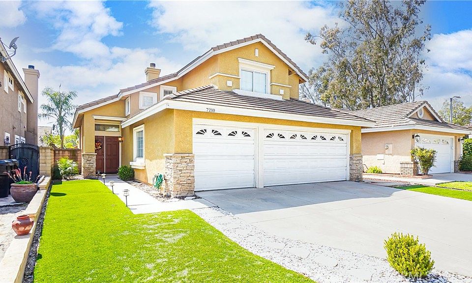 Welcome to 7210 Altari Pl! Embrace the epitome of California living in this exquisite Rancho Cucamonga abode equipped with the energy efficiency of a fully paid off Solar network. Positioned on a sprawling lot in a sought-after neighborhood zoned to the award-winning Etiwanda School district, this home exudes curb appeal and charm. Step inside to discover an impeccably designed interior featuring tiled flooring, a two-sided fireplace, and open kitchen with ample counter space equipped ready for family gatherings and the best memories! The main level offers a seamless flow between the dining room, living area, and downstairs bedroom, creating an ideal space for both relaxation and entertainment. As you walk up the curved staircase, the expansive primary suite awaits, offering a private sanctuary with a luxurious fully remodeled bath and ample closet space. On the opposite end of the property sits two spacious bedrooms, joined by a Jack-and-Jill bathroom, providing plenty of counter space for all day essentials. As you step outside, the well-manicured backyard boasts a perfect balance of vegetation while providing the ease of low maintenance hardscape. Take an invigorating dip in the home's private heated pool and spa or just embrace the outdoors as a tranquil retreat to unwind amidst the lush surroundings. On the weekends, explore the walking trails, ball fields, basketball half-courts playgrounds, picnic tables and BBQ’s of Ellena and Vintage Park with the family. This home offers the ultimate in comfort, style, and convenience!