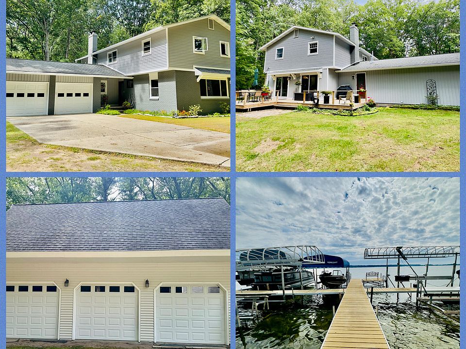 Enjoy summer days on White Lake with 100 ft of association access, a sandy beach, docking privileges, and kayak storage. This 2-story, 4-bed, 2.5-bath home in Blueberry Ridge sits on 2+ private, wooded acres and has been extensively updated over the past five years. Highlights include a new kitchen with quartz counters, luxury vinyl flooring, ambient lighting, and a spacious primary suite with double-head shower, double sinks, and all new bathrooms. Updates also include siding, sliders, windows, paint and more! The den features a real wood fireplace with in-floor radiant heat. A 2-car attached garage, 3-car detached garage with pellet stove, and 2nd-story storage provide abundant space. The full basement is ready to finish. Outdoors, enjoy a large deck and block firepit. Just a short walk to the water. A 4,000 lb boat lift is negotiable. Roof rider full home warranty paid through 2030 and transferable. Five-zone boiler heat.