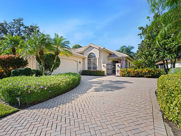 Beautiful Pool home with Lake View in ''Mystic Pines'' at PGA Village. This home offers fabulous Sunsets & tropical landscaping. Features CBS Construction, front gate entrance, tile flooring in main areas, vaulted ceilings, updated lights, fans & Plantation Shutters. Hosts 2 BR's, Large Den, 2 BA's, 2 Car Garage & Golf cart negotiable. Stunning Eat in Updated Kitchen boasts gorgeous quartz counter tops & backsplash, stainless steel appliances, wine cooler, under counter lighting & Island. Split floor plan with spacious Master Suite, sitting area overlooking the lake, walk in closets with built in's, decorative fireplace & Master Bath w/ LG shower & Roman Tub. Screen enclosed heated pool w/ new pump & heater, waterfall pond & summer kitchen. Perfect To entertain! This home is in MOVE IN CONDITION & SHOWS WELL! Included in HOA fee's Manned gated security, lawn care, cable, internet & The Island Club which offers something for everyone. Resort Style pool, patio, fitness center, billiards, card rooms, craft room, ballroom, Tennis, Pickelball, playground, butterfly garden, clubs, entertainment travel & More. Located in PGA Village offering 3 Champion Public golf course or memberships available. Plus the Legacy the private club with another Champion golf course & short course. No mandatory golf membership is necessary to live in PGA Village. Located close to shopping, restaurants, doctors, hospitals, schools & even home of the NY Mets Spring Training. Only 45 minutes from Palm Beach Airport.
