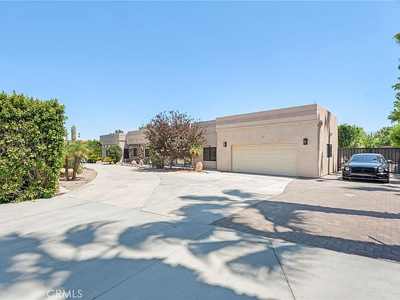 Welcome to your private, fully remodeled oasis in the exclusive Clancy Lane area of Rancho Mirage. This extraordinary 4-bedroom, 4-bathroom estate sits on an oversized 1-acre (40,946 sqft) lot offering the tranquility of a private park with lush landscaping, mature fruit trees, and luxurious finishes throughout. A circular driveway leads to a striking custom pivot front door, setting the stage for the sophisticated design inside.
