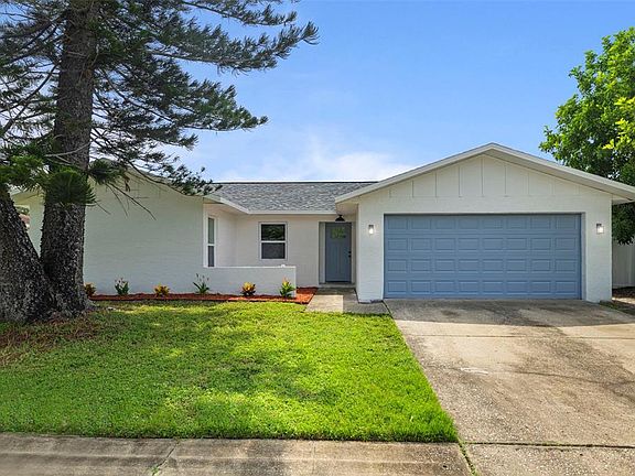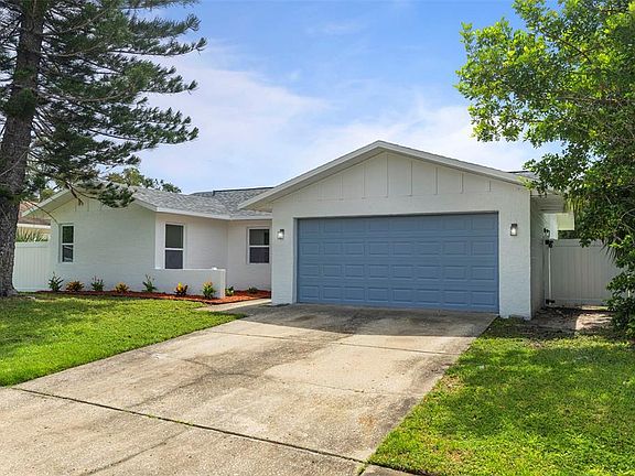 Completely Renovated & Move-In Ready! This solid block 3-bedroom, 2-bathroom home has been updated from top to bottom with quality finishes and energy-efficient upgrades. Inside, you’ll find luxury vinyl floors throughout, fresh interior paint and trim, and new hurricane impact windows that fill the space with natural light while providing added safety and insulation. The kitchen has been completely remodeled and features a beautiful island with extra cabinets on the backside that also is an eat-in space as well. The quartz countertops, farmhouse sink, and new appliances make this space a chef's dream. The bathrooms have been beautifully updated. The exterior boasts fresh paint for modern curb appeal and a new fence in the backyard. Updates include new hot water heater, new Hurricane impact windows (2025), new garage door, new interior and exterior paint, new planters, updated plumbing, updated electrical, and a new rear fence. Centrally located close to shopping, dining, and beaches, this home blends style, comfort, and efficiency—ready for you to move in and enjoy!