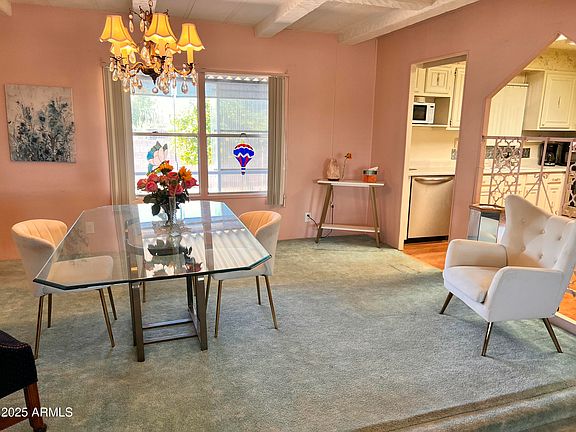 Welcome to 7212 E Abilene Ave, a serene retreat in the vibrant 55+ Mesa East Community. This 3-bedroom, 3-bath home sits on a premium cul-de-sac lot—one of the largest in the neighborhood. Each spacious bedroom features its own en-suite, with an addition built in 1983 that expanded living space. Key updates include energy-saving window screens, new appliances (2020), AC (2020), water heater (2021), and a 30-year roof (2008). Relax on the front porch with views of the Superstition Mountains or entertain in the backyard with citrus trees, roses, and a gazebo. The Mesa East Clubhouse offers a pool, auditorium, library, kitchen, shuffleboard, and endless activities—all with no PAD rent (you own the land) and a low annual HOA. Close to golf, resorts, shopping, and healthcare! Must See !