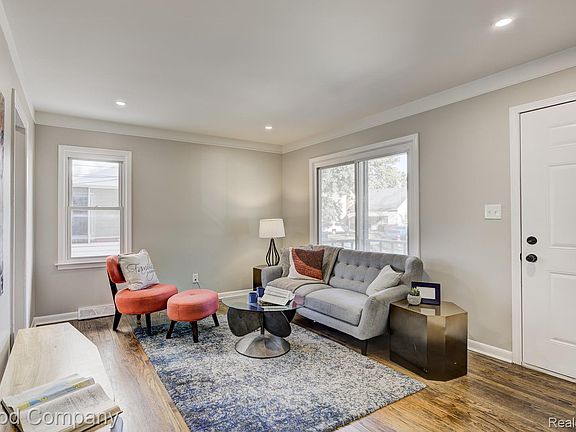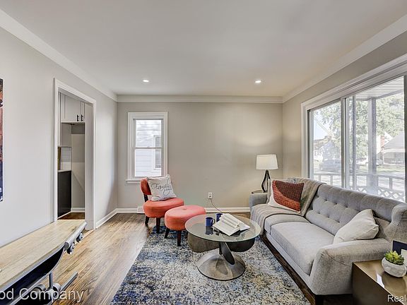 Matterport virtual walkthrough available on Homes. Fully updated ranch in Warren with a stylish new kitchen, fresh finishes throughout, and a spacious backyard retreat. Step inside to a light-filled living room with recessed lighting, warm-toned hardwood floors, and a cozy, modern feel. The completely renovated kitchen boasts stainless steel appliances, subway tile backsplash, crisp white and gray cabinetry, and a charming eat-in area with great natural light. Two comfortable bedrooms sit just down the hall and share a beautifully updated full bath with sleek tile and modern fixtures. Outside, enjoy the large fenced yard, perfect for entertaining or relaxing on the deck, plus a detached garage for extra storage or parking. Convenient location just around the corner from Groesbeck Park and close to shopping, dining, and expressways. Welcome Home!