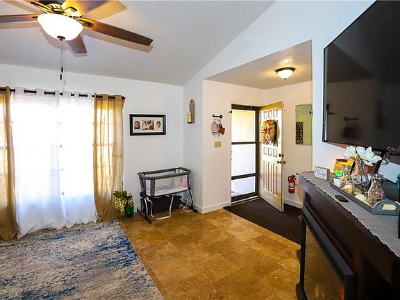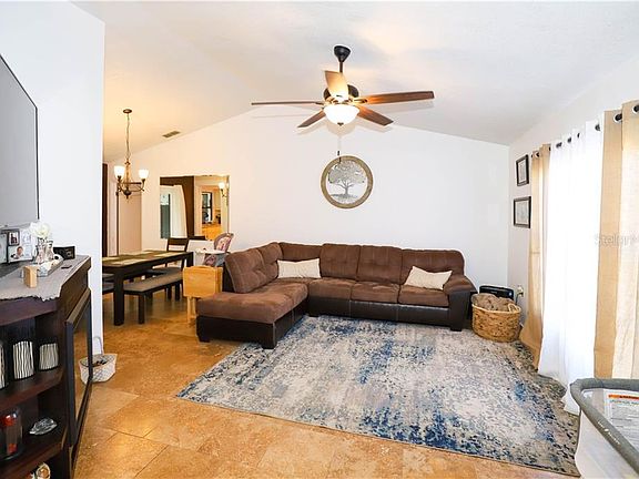 If you are looking for a 4 bedroom split plan home with amazing backyard space this home is for you! The home features vaulted ceilings, Travertine flooring throughout (no carpet), large master bedroom with updated master bath complete with separate walk-in shower and jacuzzi tub, a formal dining room, spacious kitchen with breakfast bar, inside laundry, 2 car garage, a oversize screened lanai to enjoy your private backyard. The home has newer AC. Seller will install a new roof with a accepted offer. Call today for your private viewing before this opportunity passes you by.
