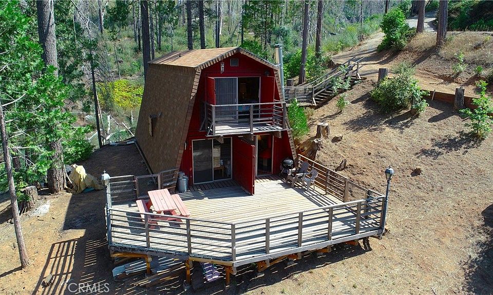 This "A" Frame, CABIN style HOME, screams Charm & Personality and packs a lot of WOW! Mr. & Mrs. Seller poured their hearts and souls into building this Beauty, 40 + years ago, and raised their family while enjoying the good life. From the security of the Storm Doors to the Fire Resistant Fiberglass Shingles, you will see right away how lovingly cared for, and how much attention to detail was thought out. At the entry level of this sweet chalet you will find yourself at the Master bedroom with balcony and private sitting area. There is also space for your washer and dryer here. Below is a completely functioning Kitchen, Living Space, and Full Bath, as well as two Guest Bedrooms. Stroll on over to the Sliding glass doors, walk out onto the seasoned redwood deck and feast your eyes on Nature at her finest. Snyder Creek below will have you lost in your thoughts in no time. Add this to the serenity, and solitude, that comes with spending time with Mother Nature, not to mention the clarity of the stars at night that will no doubt boost your senses. This adorable home comes with nearly 1500 sf of living space, the potential to be 4 bedrooms (County Records show 4 bedroom septic approval), the privacy you yearn for, furnishings, and a Redwood deck that is perfect for whatever your heart desires. HIKE DOWN TO THE SWIMMING HOLE (Adjoining NATIONAL FOREST ON THE EAST SIDE) and spend the day re-charging. Take a nap while listening to the sound of the wind blowing & the creek flowing, gathering for a Bar-B-Q, or just sit and listen to the peace and quiet. Sellers say Cabin can sleep 8-10 and more, comfortably. Cozy wood stove to keep you warm. Lots of natural light. Great area for hiking and biking and just being. To ensure your privacy ADJOINING PARCEL APN#009-070-006 INCLUDED IN SALE. From the words of the late, great Gary Snyder, "NATURE IS NOT A PLACE TO VISIT. IT IS HOME"!