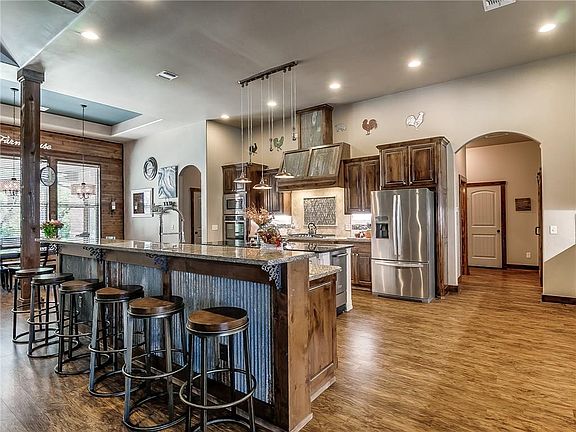 Vacation from home! Truly a unique treasure that rarely comes open. Custom builder's personal home is on 8.75 acres and features a hard to find private stocked pond with two docks, full fencing, a pool, and a hot tub. Better than Green--it includes Green features, but also includes a ZipWall system, noise reducing insulation, mylar radiant barrier, and a $35,000 solar panel (12.2kW) system for crazy utility reduction (see attached info). This executive home includes wood-style flooring, barn doors, granite counters throughout, and an Urban Farmhouse design. Your gourmet kitchen includes a 9-ft center island with built-in ice maker, a 12-ft breakfast bar, copper farm sink, stainless appliances, and a 14-ft prep area/storage. And the piece de resistance? A 1,500 sq ft steel-beam shop with pull through (two garage doors), concrete floor, and 220V in addition to a 21x18 metal storage building with gravel floor. Check out the amenity list for all the upgrades.