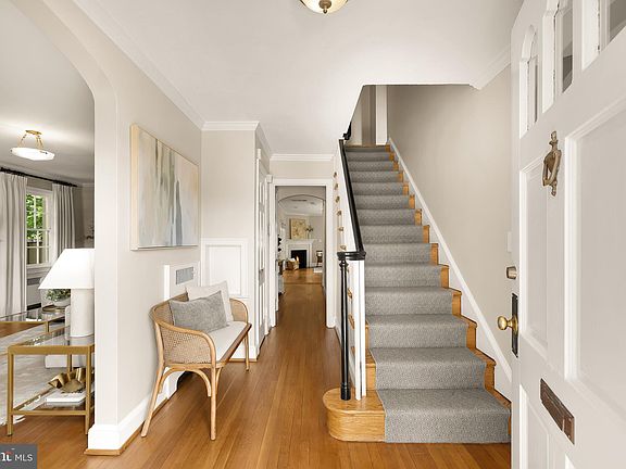 Set back from the verdant street in the heart of idyllic Martin’s Additions in Chevy Chase is this charming colonial. Originally constructed in 1935, the home retains its historic character while being fully upgraded to meet contemporary lifestyle preferences. A flagstone walkway leads to the inviting front entrance, where the home’s classic symmetry and dormers embedded in the slate roof offer effortless curb appeal. The traditional center hall floor plan features formal living and dining rooms flanking the entry foyer. Both spaces are generously proportioned, with the living room showcasing a roaring fireplace and the dining room providing an ideal setting for dinner parties. Accessed via double doors off the living room is a private study complete with new custom built-ins and views out to the garden. In contrast to the formal areas, the informal spaces are open concept, suited to a modern style of living. The chef’s kitchen is the heart of the home, featuring modern cabinetry, stone countertops, stainless steel appliances, a commercial range,a stylish hood vent,and spacious pantry. A new backsplash and lighting enhance the space, which opens to the spacious family room. Here, a cozy wood-burning fireplace, refinished built-ins that offer ample storage, a large bay window, and direct patio access create the perfect gathering place. An elegant, newly renovated full bath completes the main level. Upstairs, the luxurious primary suite features an inviting integrated bench beneath the bay window, private roaring fireplace, and new closets. Its sumptuous ensuite bath boasts a double vanity, soaking tub, and separate walk-in glass shower. Two additional bedrooms and a hall bath complete the upper level offering ample accommodation. The freshly updated lower level offers a recreation space for true multipurpose flexibility. The newly updated powder room and direct access to the attached garage complete the space. A true highlight of the home is the parcel of land it is situated on, for both its outdoor space and prestigious location. Adjacent to the flagstone patio off the family room is a large, flat, usable grassy backyard. Fully fenced and shaded by lush, mature foliage, the rear lawn offers complete privacy and is effortlessly maintained by the all encompassing irrigation system. The unparalleled location is steps away from Chevy Chase Park, the weekly farmer's market, Olympia Cafe, Brookville Supermarket, and the legendary La Ferme Restaurant, as well as falling within the CCRA Swim and Tennis Club scope. Perfectly blending historic charm and modern livability and situated in one of the Capital Region’s most sought-after communities, 7213 Chestnut Street represents the epitome of Chevy Chase living.