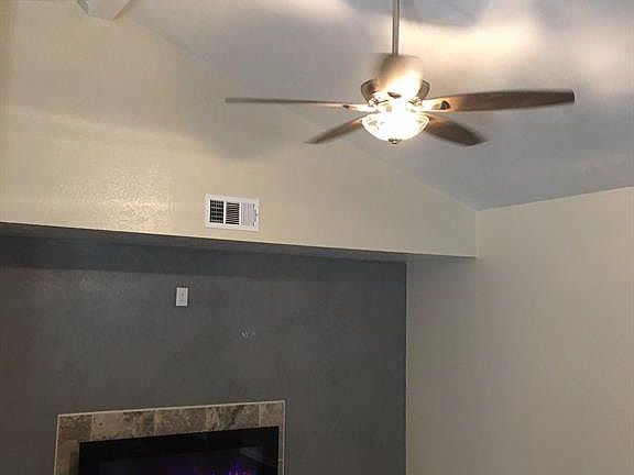 Won't last long! Remodeled half-duplex. Freshly painted inside & out; 3 Bdrms, 2 BA's, LR, DR, Lndry Rm, fenced side and rear yard. Check out the HVAC unit, oversized shower & tub. Home has a modern look and feels attributed to floating soft-closed cabinets, decorative lighting, wide baseboards throughout; new wood flooring. Remote operated electric fireplace & ceiling fan. New energy-efficient windows, with screens. Cordless faux wooded blinds. Six-panel interior doors. Patio & back door has full-length door windows with enclosed cordless aluminum blinds. Trendy kitchen vent-a-hood, with frosted glass lighted uppers. Stylish fixtures, granite countertops, deep stainless steel sink with pull-out faucet handle.