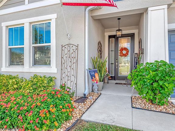 MUST SEE! Discover modern Florida living in this gorgeous, well-maintained 2920 Sq. Ft., 4-bedroom, 4.5-bath home located in the gated Talamore neighborhood of Watergrass in Wesley Chapel. Perfectly positioned on a peaceful conservation lot w/ lake view, this home offers privacy, style, & sunset views you’ll love coming home to. Inside every detail shines — from 8-ft interior doors, tray ceilings, crown molding, premium Mohawk RevWood flooring, quartz countertops throughout to custom board & batten accents. The open-concept floor plan is perfect for entertaining. The gourmet kitchen includes 42” upper cabinets, large custom pantry w/countertop, Café appliances, 36” cooktop, built-in convection oven & microwave, all cushion-close cabinetry, and a wrap-around island for extra storage. Spacious master bedroom/bathroom features cushion close cabinets, custom walk-in closet, garden tub, & separate shower w/dual shower heads. Additional bedrooms feature private baths & closets w/ wood-slate shelving ideal for family & guests. ALL bathrooms include Moen Eco-Friendly Bathroom Shower Heads & Faucets, & Braun Anti-Bacterial exhaust fans. Looking to unwind? Step outside to a true backyard retreat and relax in the 7-person therapeutic spa, cook for guests using the fully equipped outdoor kitchen, or enjoy a glass of wine while watching the sunset from the beautifully landscaped, pavered bonus patio area. Additional highlights include whole house intranet, epoxy-coated garage flooring, Govee outdoor lighting, security system w/external cameras, AquaSana 3-Stage Max Kitchen Water Filter & pre-plumbed water softener access. Just too many upgrades to list! Located just minutes from Epperson and Mirada Lagoons, shopping, dining, and I-75, you’ll enjoy the perfect blend of luxury, convenience, and community living. Watergrass residents enjoy resort-style amenities including multiple pools, clubhouse, tennis/pickleball courts & fitness center. This home truly has it all — comfort, design, and the best of Wesley Chapel living!
