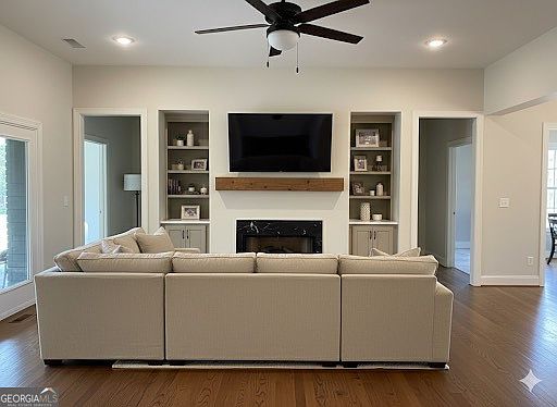 Cozy fireplaceLarge islandCovered front porchOpen concept living spacePrivate back porchSolid-surface countersVersatile bonus room