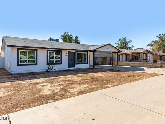 MOVE IN READY remodeled home in an excellent phoenix location. 3-bedroom 2 bath with fully redone interior boasts LVP flooring, vaulted ceilings, fresh soft paint, ceiling fans, plush carpets in the bedrooms, and an inviting living room ideal for receiving guests. Desirable great room has sliding glass doors leading to the back patio. Upscale kitchen with recessed lighting, stainless steel appliances, white shaker cabinetry, quartz countertops with waterfall, and a breakfast bar. The main bedroom provides a private bathroom with a private shower. Outside, the sizable backyard boasts a covered patio, a storage shed, and plenty of space to create your dream oasis. Conveniently located near restaurants, shopping centers, multiple schools, parks, and entertainment